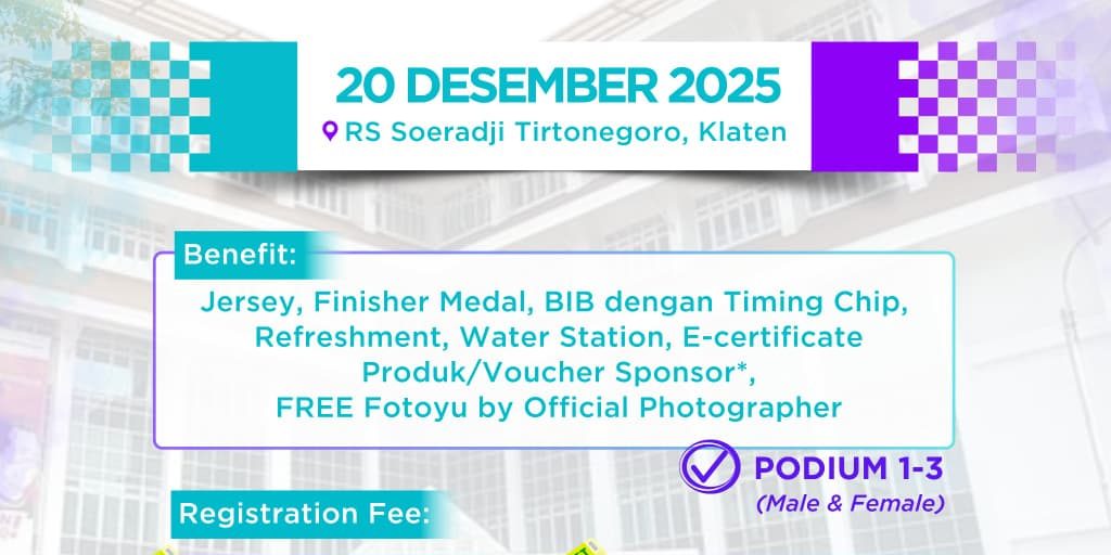 🟣 Facilities: Jersey, BIB dengan Timing Chip, Finisher Medal, Refreshment, Water Station, FREE Fotoyu by Official Photographer, E-certificate, Produk/Voucher Sponsor.